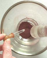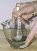 | 9. Rub, quite lightly, the bits of lake in a mortar/pestle and continue grinding to as fine a powder as you can. Then add drops of water to the powder using a dropper, and grind again into a smooth paste. This second WET grinding makes the initial powder very much finer for some reason. | |||||||||||||